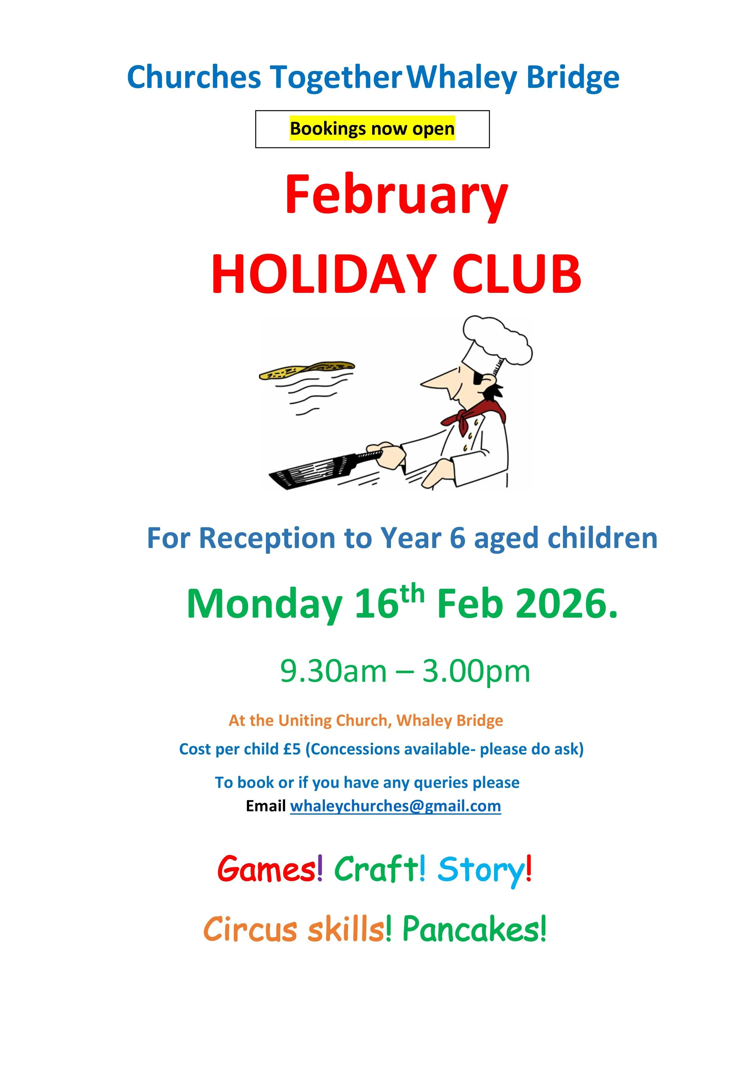 Room lettings enquiries - please contact cofe.whaleybridge@gmail.com