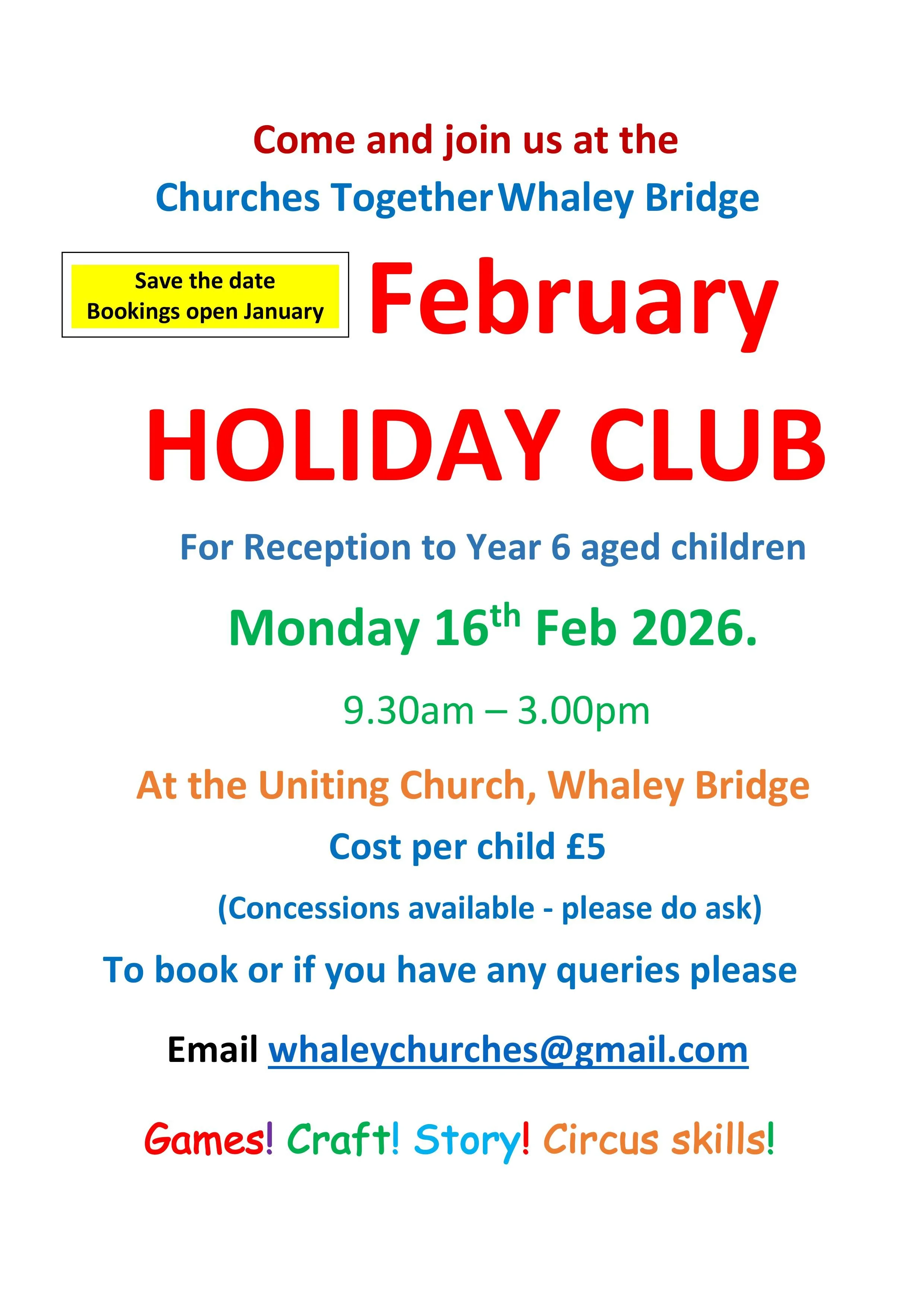 Room lettings enquiries - please contact cofe.whaleybridge@gmail.com